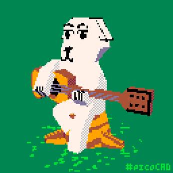 Low polygon model of KK Slider sitting on a tree trunk just playing some music and enjoying life
